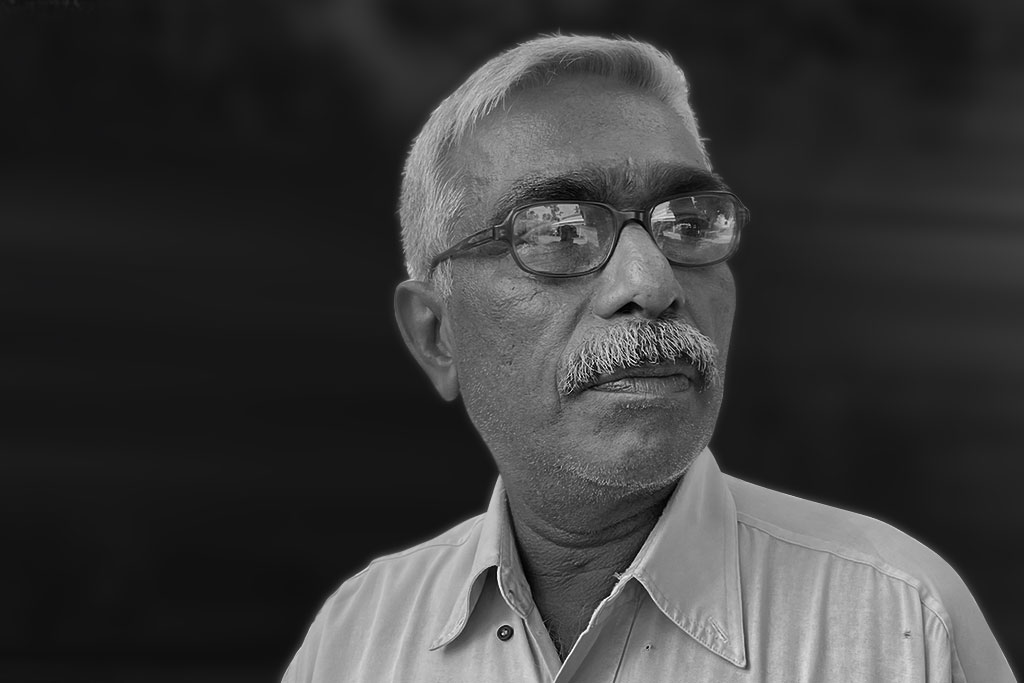 Born in Thrissur, Kerala. The creative world of Azis T.M. is full of humanity, in its soft tones and vibrancy. Even when fighting the odds, life in its brightness comes to the fore in his compositions that never romanticize anything in life-be it the human forms or the nature around.