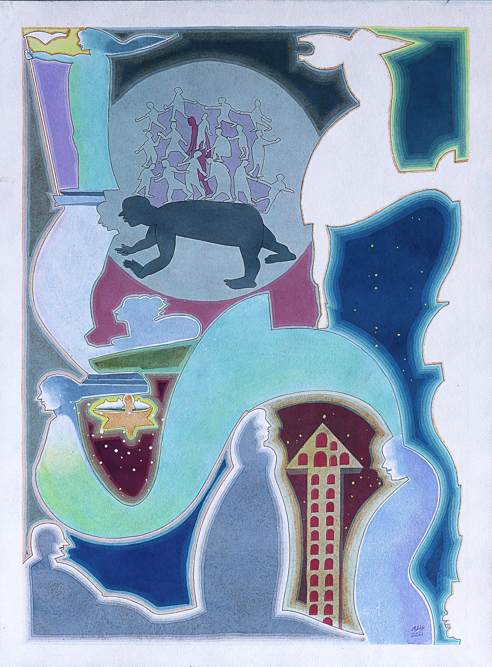 Born in Thrissur, Kerala. The creative world of Azis T.M. is full of humanity, in its soft tones and vibrancy. Even when fighting the odds, life in its brightness comes to the fore in his compositions that never romanticize anything in life-be it the human forms or the nature around. “I have never been particular about maintaining a style, and I realize that experiences change with time. I accept the new environment, people and also like to adapt new techniques and colors,” he says. His art is influenced by the places and people around and the situations that he encounters. That is why ordinary elements become extraordinary statements in his works that celebrate and reflect life, with all its apparent lightness and internal gravity. Azis did his MFA at the Jamia Millia Islamia University in Delhi, after his BFA in painting from the College of Fine Arts, Thiruvananthapuram. He had his first show in the late 1980s and since then has held a number of solo and group exhibitions, apart from participating in camps and residencies. Azis presently lives and works in Thrissur, Kerala.